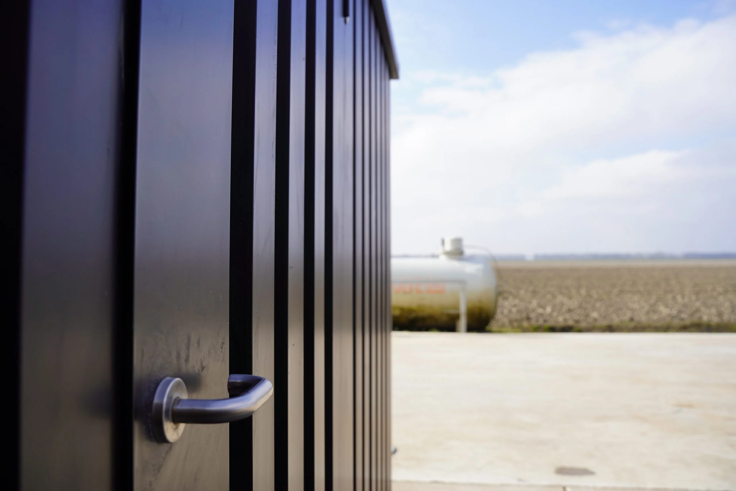 El kit contenedor se entrega completo con suelo, paredes, techo y puertas. Las paredes son de chapa de acero galvanizado.